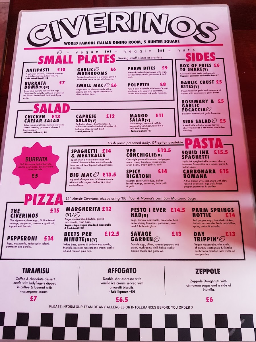 Welcome to Civerinos Hunter Square (the original), a vibrant sanctuary for pizza lovers nestled in the heart of Edinburgh. Located at 5 Hunter Square, this spot is celebrated for its delightful menu that seamlessly blends classic flavors with a modern twist. Here, the pizza dough is uniquely soft, offering a different but refreshing experience, while toppings burst with fresh, deliciousness.